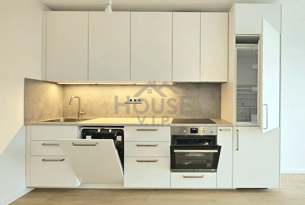 -prostorný obývací pokoj s novým kuchyňským koutem a kvalitními spotřebiči Electrolux,