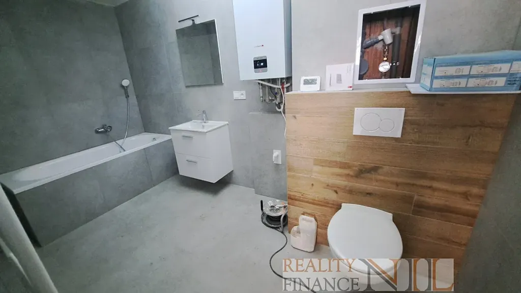 Zcela nový byt se skládá ze 3 místností – obývací pokoj s kuchyňským koutem a 2 pokoje. V obýváku a ložnicích jsou okna s výhledem do dvora. Koupelna je vybavena vanou, umyvadlem a toaletou. Byt je zařízený novou kuchyňskou linkou (elektrická trouba, el. varná deska, digestoř, příprava na myčku). Ohřev vody a topení zajišťuje plynový kotel, který je umístěný v koupelně. Podlahy – vinyl v pokojích, dlažba v kuchyňském koutě, předsíni a koupelně, okna plastová, zateplená fasáda.