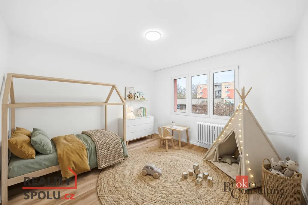 Samotný byt o užitné ploše 72 m² se skládá z předsíně, dětského pokoje, společné koupelny s toaletou a sprchovým koutem, kuchyně s novou kuchyňskou linkou včetně spotřebičů, ložnice a prostorného obývacího pokoje s přímým vstupem na vlastní lodžii o ploše 3 m².