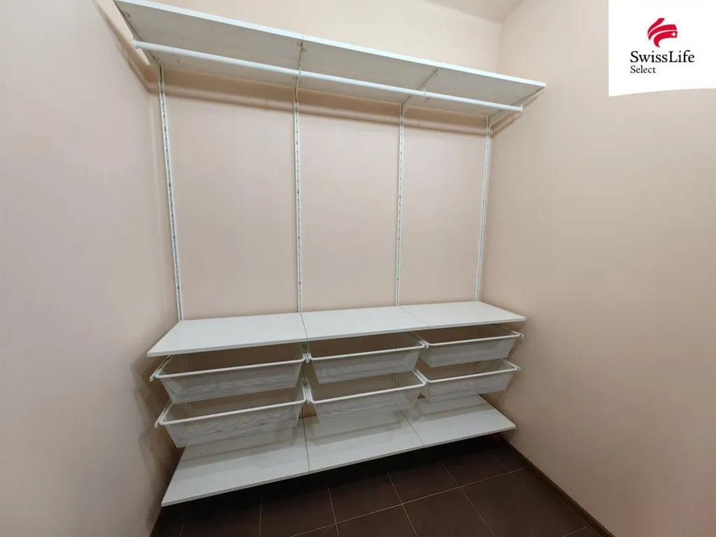Součástí bytu je také šatna, která poskytuje dostatek úložného prostoru, a sklepní prostor. Vytápění je zajištěno kotlem na tuhá paliva, což garantuje efektivní a bezpečný provoz. K bytu náleží garáž přímo u domu, kterou oceníte zejména v zimních měsících.