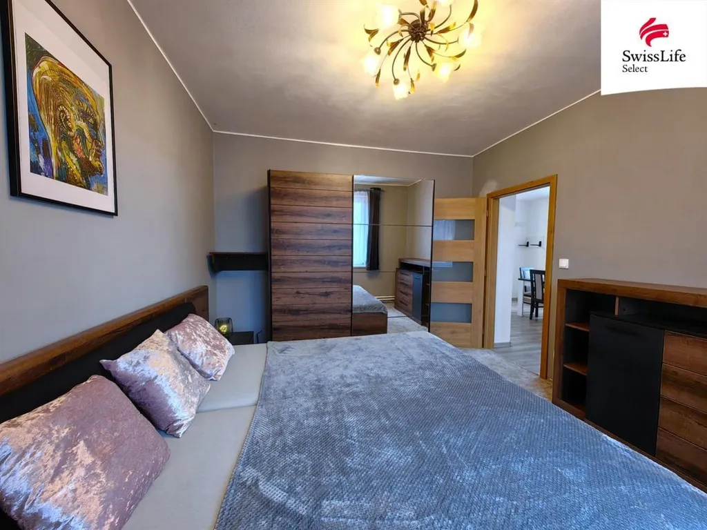 Byt je ideálně dispozičně řešený a nabízí velkorysý prostor pro pohodlné bydlení. Srdcem bytu je kuchyň s jídelním koutem, která je vybavena kuchyňskou linkou. Obývací pokoj je příjemně prostorný a vybavený moderní sedací soupravou. Ložnice je kompletně zařízená a nabízí ideální místo pro odpočinek.