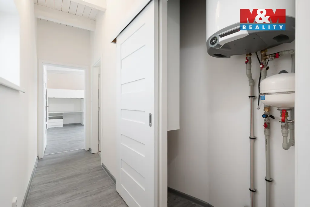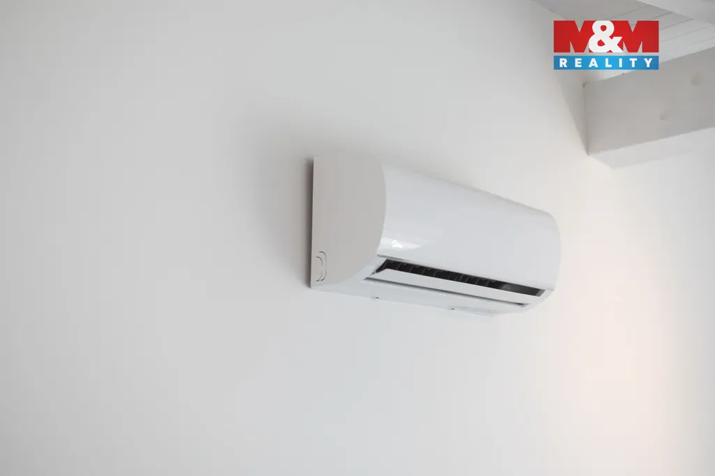 Dispozice nabízí vzdušný obytný prostor s moderní kuchyní a jídelní částí, obývací pokoj, ložnici s vestavěnou skříní a dětský pokoj. Interiér je sjednocený do čistého moderního designu pro náročné klienty. Samozřejmostí je klimatizace, elektrické žaluzie a kvalitní technické zázemí. Dům je vybaven fotovoltaikou pro efektivnější provoz. Parkování je zajištěno za elektrickou bránou, k dispozici i zahradní domek a společná zahrada pro posezení či relax.