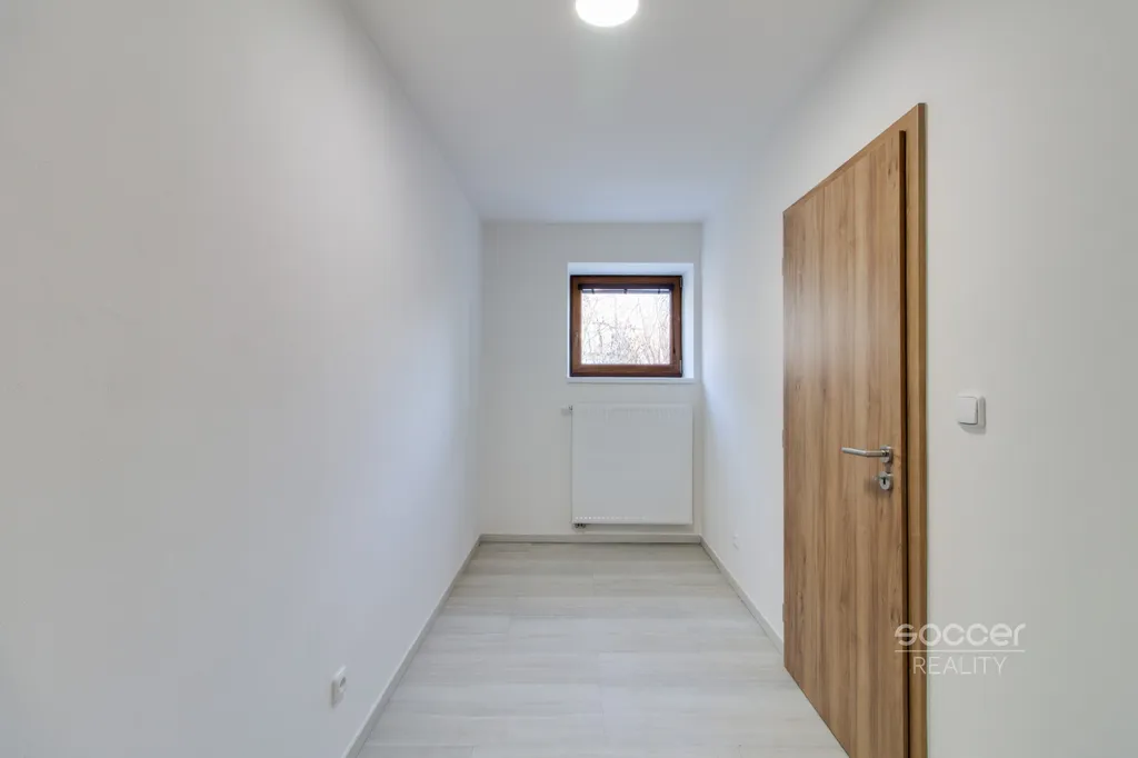 Jedná se o byt se samostatným vchodem, který se nachází v přízemí cihlové vily. Skládá se z předsíně 5,4 m2, kde je dostatek místa na botník, koupelny 2,6 m2, ložnice, která je o rozměrech 1,7 m na 4,8 m a pokoje s kuchyňským koutem bezmála 16 m2. Výška stropu 2,6 m.
