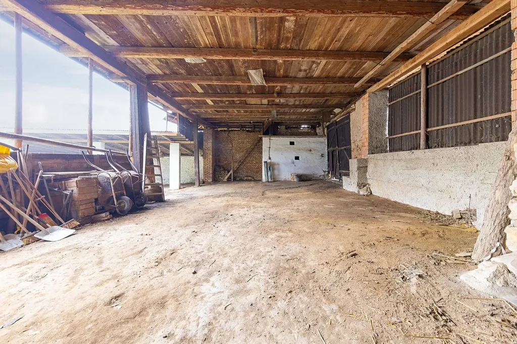 Dále jsou k dispozici sklady, chlévy a další zastřešené otevřené části o velikosti 281 m2. Rozloha všech půdních prostor v usedlosti činí cca 370 m2.