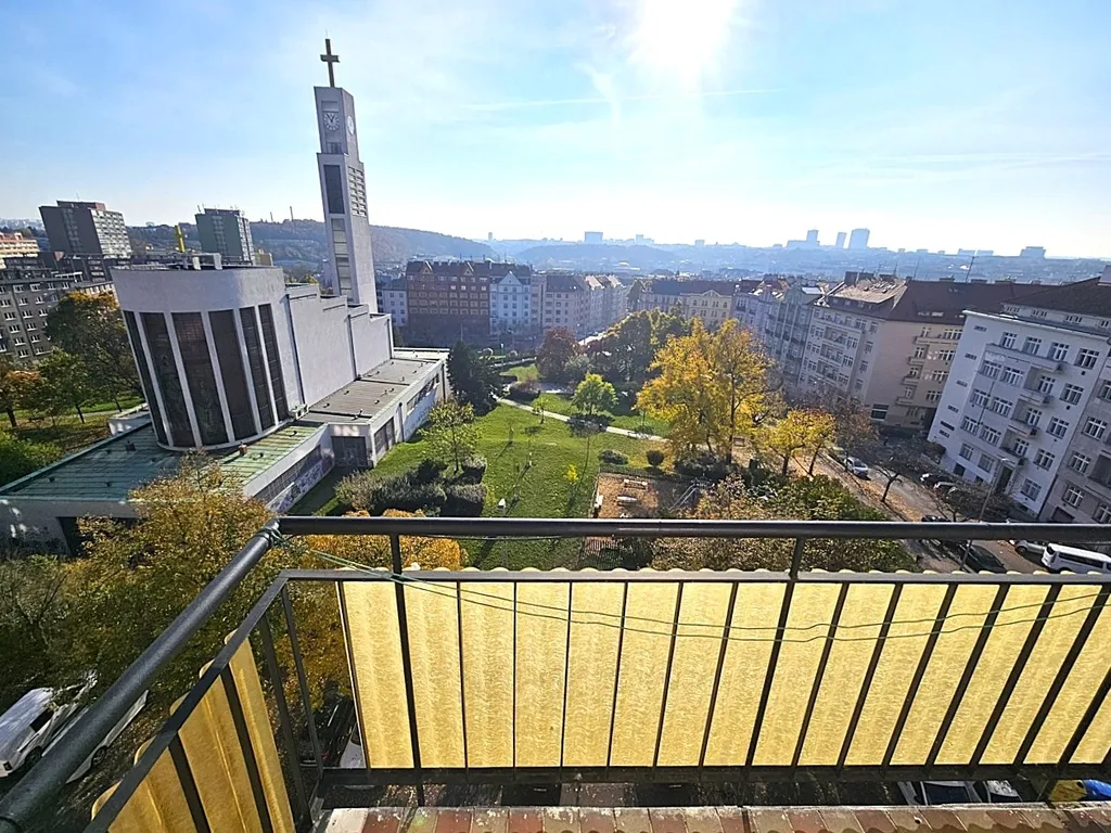 Pronájem bytu - velmi pěkný, slunný byt 55 m2 + balkón cca 3 m2, Praha 10 - Vršovice, ulice náměstí Svatopluka Čecha, 6.patro (poslední) v cihlovém domě s novým výtahem. Dům je velmi klidný a slušný, obývaný převážně samotnými majiteli bytů. Orientace bytu je na jih (obývací pokoj a balkón) s krásným výhledem do širého okolí a na sever (ložnice a kuchyně) do klidného zeleného vnitrobloku se vzrostlými stromy.