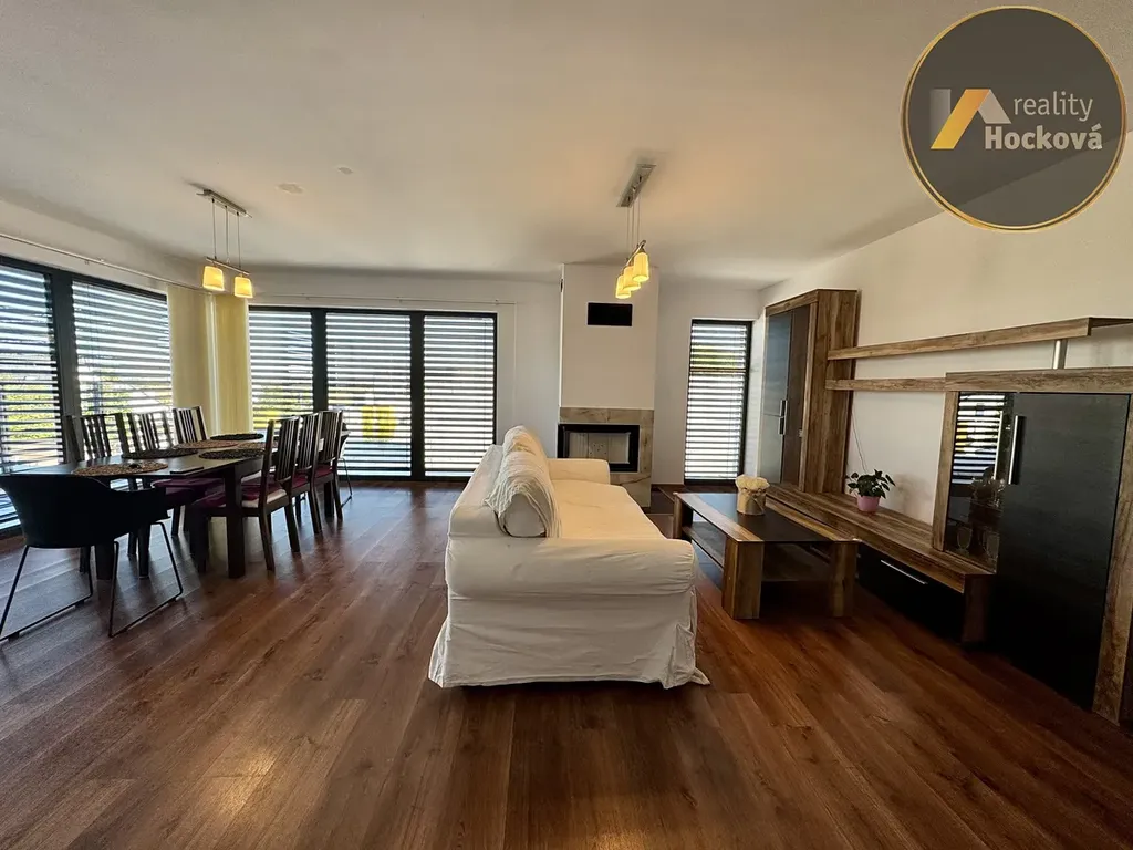 Byt je vybaven moderní kuchyňskou linkou se zabudovanými spotřebiči a americkou lednicí, obývací pokoj zdobí krbová kamna ideální pro večerní pohodu. Komfort zajišťuje podlahové vytápění přes tepelné čerpadlo, venkovní žaluzie a velkoformátová dlažba. V prostorné koupelně najdete sprchový kout i vanu.