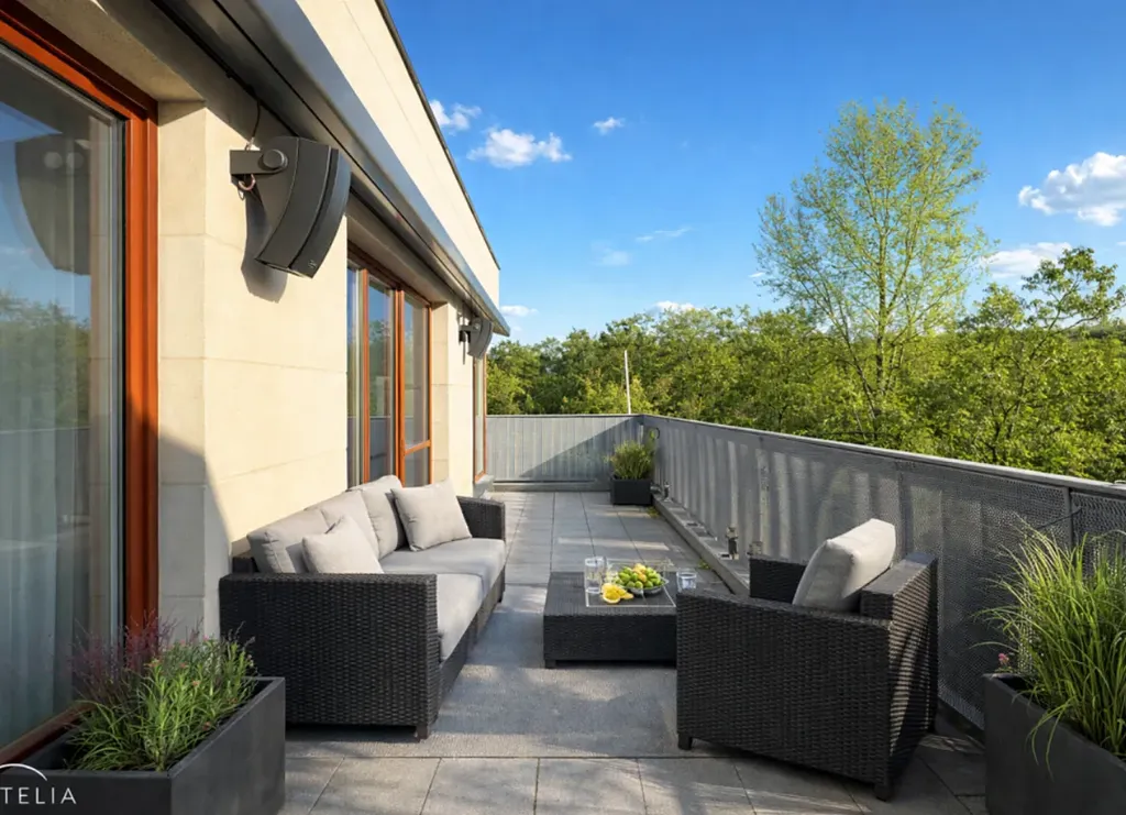 Rezidenční areál, ve kterém se byt nachází, kombinuje moderní architekturu s citlivě zrekonstruovaným historickým objektem, čímž vzniklo bydlení s jedinečnou atmosférou. Areál je řešen jako uzavřený a střežený komplex s recepcí 24/7, nabízí vysokou míru bezpečí a soukromí. Mezi jednotlivými domy jsou soukromé zahrádky, společné relaxační zóny, dětské hřiště, dostatek zeleně a vzrostlé stromy, které podporují klidnou a přátelskou sousedskou atmosféru.