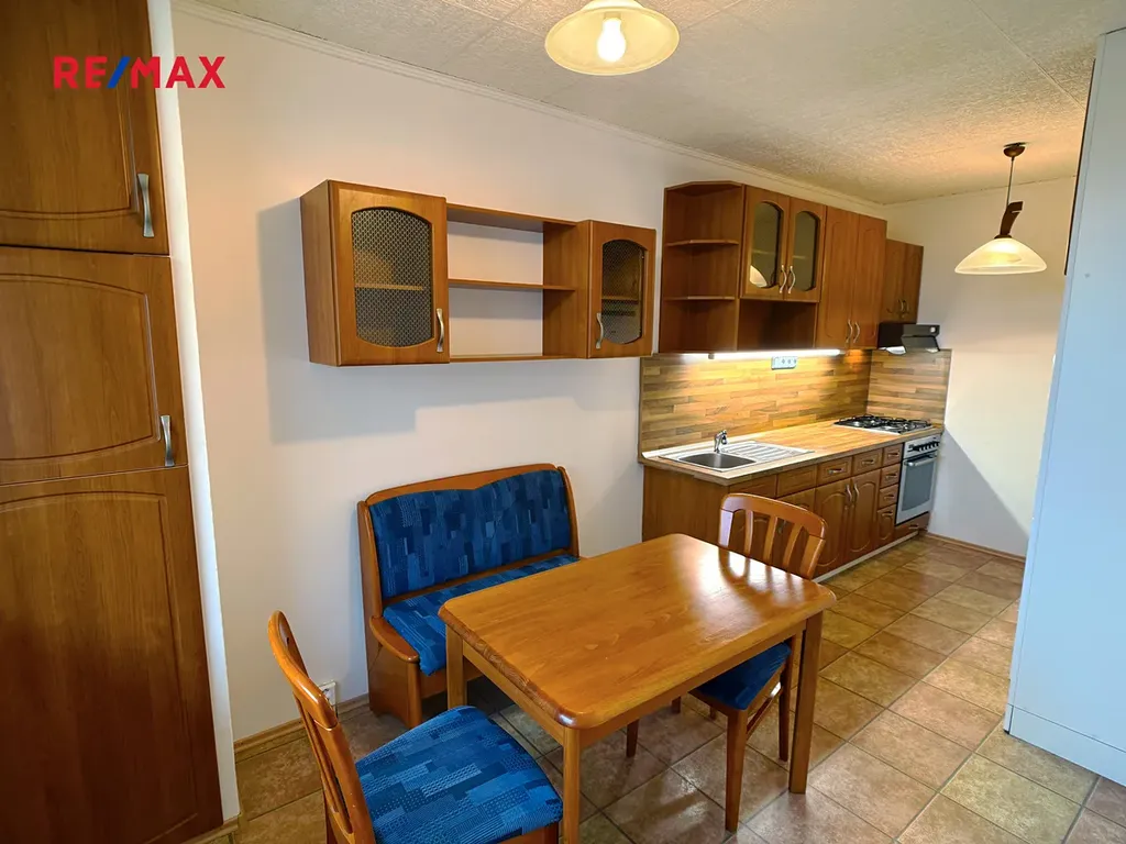 prostorná kuchyně (12,7 m²) vybavená lednicí, plynovým sporákem, elektrickou troubou, jídelním stolem a židlemi a další 3 pokoje (18,8 m², 12,3 m² a 12,1 m²), koupelna po rekonstrukci se sprchovým koutem, umyvadlem a pračkou, samostatné WC, předsíň (8,2 m²) s vestavěnou šatnou (1,6 m²), a skříní - uložným prostorem