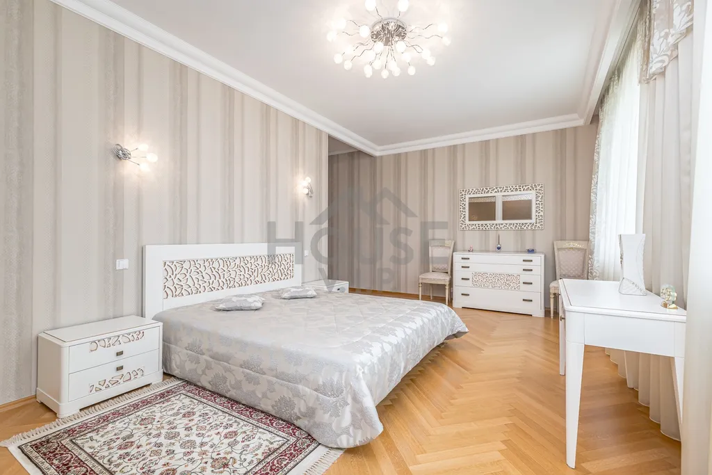 Dále se v patře nacházejí 2 velké zařízené ložnice, každá s vlastní koupelnou, a dobře vybavená pracovna s archivem, technické místnosti - žehlírna s úložnou skříní.