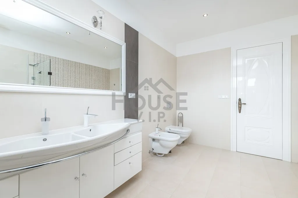 Dále jsou zde 2 ložnice, každá s vlastní toaletní místností, vybavenou sprchou a bidetem, a toaleta pro návštěvy.