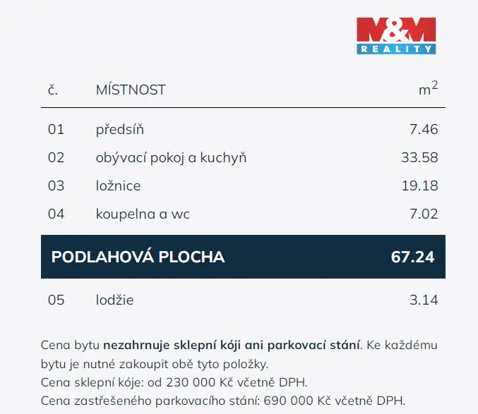 Nabízíme nový byt 2+kk,67 m2 s lodžií 3 m2, umístěný ve 2. NP s výtahem. Nachází se v novém dokončeném projektu Střížkovský dvůr, který se nachází v pěší vzdálenosti od metra, v tiché ulici Střížkovská na rozhraní nového Střížkova a starého Proseka. Stavba svou architekturou zapadá do okolního prostředí a navazuje na zástavbu rodinných domu. Byt má vysoký standard provedení - dřevěná okna, přírodní dřevěné podlahy, velkoformátové obklady a kvalitní sanitu, což vytváří elegantní základ, který můžete doplnit vlastním stylem. Zajímavá dispozice předurčuje pohodlné bydlení s prostornou terasou. K bytu je možnost dokoupit garážové stání či sklepní kóji. V okolí najdete veškerou občanskou vybavenost i dostatek zeleně. Nenechte si ujít tuto možnost bydlení pro páry, rodiny či jako Vaší investici a neváhejte nás kontaktovat. Ihned k nastěhování. Bližší informace rádi sdělíme po telefonu.