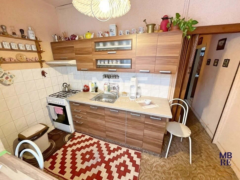Byt je v původním, ale velmi udržovaném stavu, disponuje zánovní kuchyňskou linkou a obloženým bytovým jádrem. Koupelna je samostatná, vybavená vanou, obklady a dlažbou. Dispozice bytu je ideální jak pro jednotlivce, pár, tak i menší rodinu.