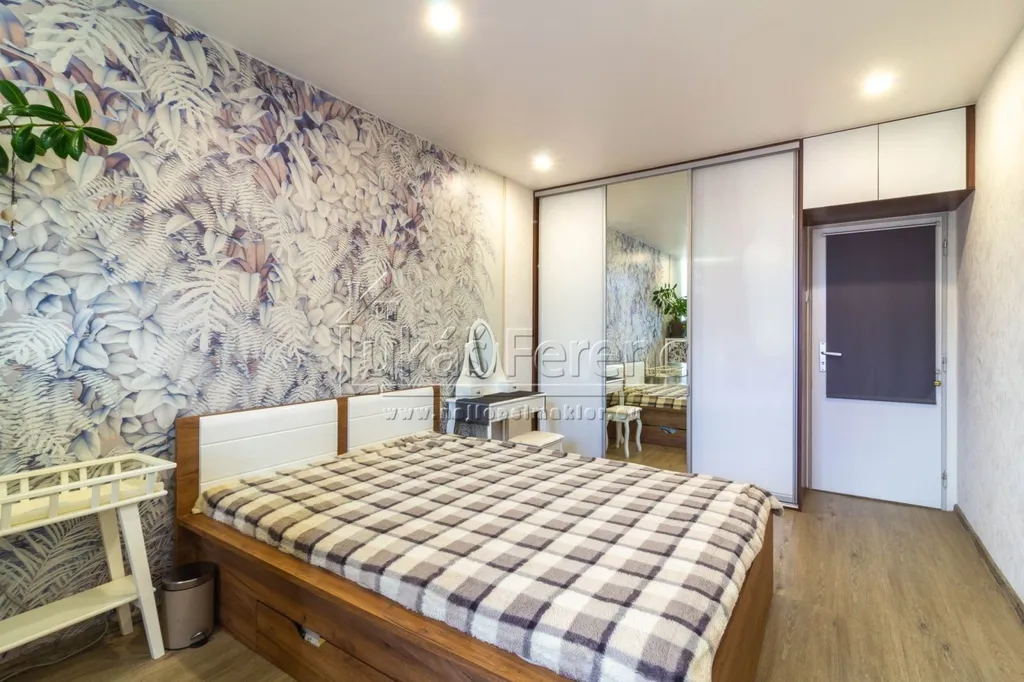Byt zaujme praktickou dispozicí i vysokým standardem vybavení. Je připojený k zabezpečovacímu systému Jablotron, přístup do bytu vede přes uzamykatelnou chodbu oddělenou od výtahů a schodiště. Kuchyňská linka na míru v hodnotě 260 000 Kč byla instalována před 2 měsíci a je vybavena vestavnými spotřebiči (myčka, plynový sporák, elektrická trouba, digestoř, lednice s mrazákem). V bytě jsou snížené stropy s bodovými světly, v ložnici i pokoji v horním patře lesklé stropní panely. V předsíni i pokojích jsou prostorné vestavěné skříně a další úložný prostor nad schodištěm.