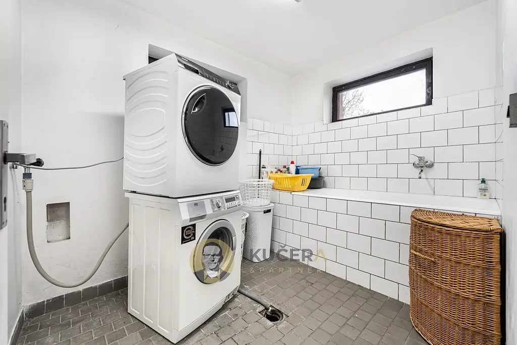 Výhodou je suterén, kam zaparkujete pohodlně dvě a klidně i čtyři auta. Suterén poskytuje plnohodnotné zázemí domu - nachází se zde technická místnost, prádelna, toaleta a skladové prostory. Díky tomu je dům dobře připravený i pro větší domácnost a zároveň nabízí dostatek místa na uskladnění věcí nebo hobby zázemí.