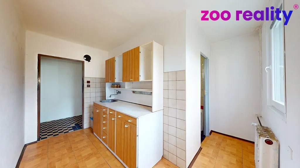Prodej bytu 3+1 s balkonem (3 m2) a příslušenstvím - sklep (2,5 m2), v osobním vlastnictví, o celkové užitné ploše 67 m2 + balkon. Jednotka se nachází ve 3. patře (4.NP), revitalizovaného panelového domu, s novým výtahem a je původní se starším zděným bytovým jádrem vhodná spíše pro rekonstrukci dle vlastní úvahy. Po určitých úpravách je možné i pozměnit celkovou dispozici bytu, která je současně od zádveří do prvního pokoje (11 m2) hned u dveří a následně do chodby, z které vstupujeme na WC, do kuchyně se samostatným vstupem do koupelny a dále pak do obýváku (18 m2) se vstupem do posledního pokoje (14 m2). Venkovní stěny byly z interiéru v minulosti také dodatečně zaizolovány. Dům je bez dluhů a závazku, nízké měsíční náklady, snížený fond oprav. K objektu náleží také pozemek okolo domu, který je částečně užíván jako vlastní parkoviště. Vybavenost a služby v docházkové vzdálenosti, lokalita nad nemocnicí, více k občanské vybavenosti v odkazech jednotlivých serverů pod inzerátem či internetových mapách. Dispozici bytu si můžete projít i ve virtuální prohlídce s možností zoomu, měření, aj.. Více informací rád sdělím na dotaz, či na prohlídce.