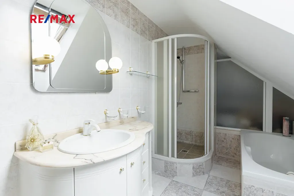 - hlavní koupelna s vanou i sprchou, další koupelna en suite