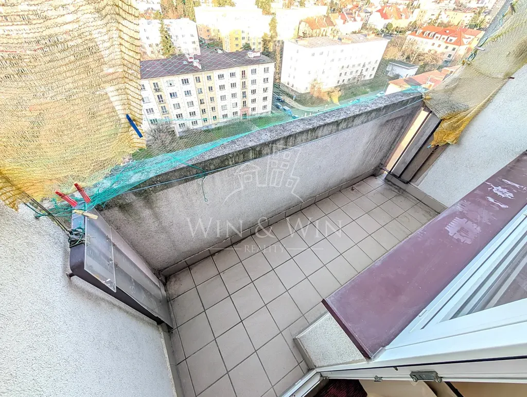 Byt před rekonstrukcí s podlahovou plochou 76 m², se dvěma balkony a sklepem se nachází v 11. patře udržovaného, zatepleného domu. Perfektní dispozice, jejíž výsledkem je pocit výrazně většího bytu, a umístění bytu zajistí především klid a soukromí jeho obyvatel.