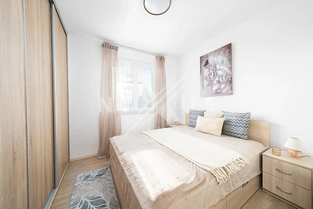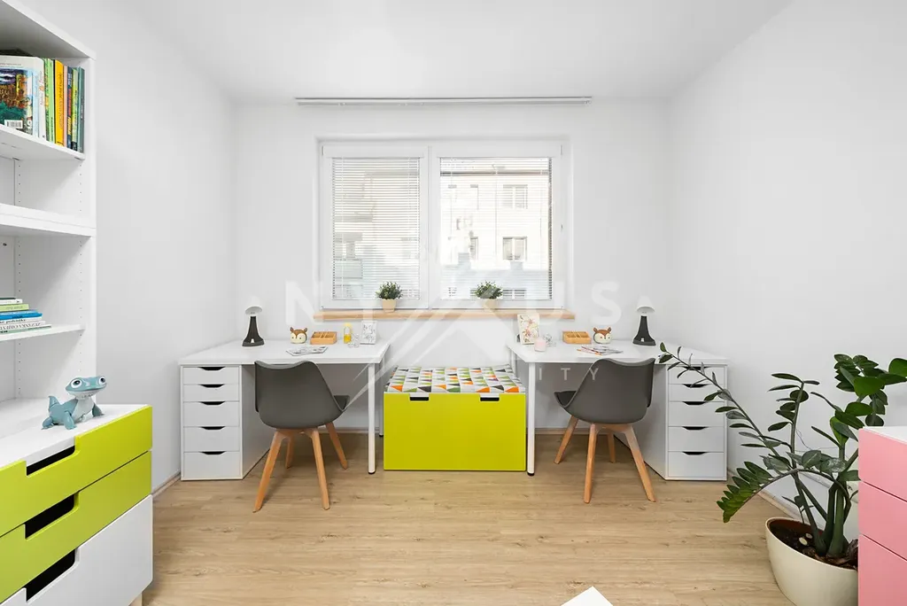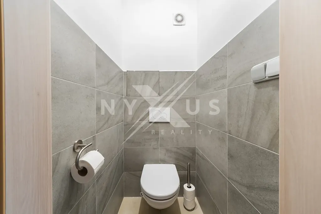 K bytu dále náleží garáž, sklep a praktická komora přímo na patře. Velkou výhodou jsou dvě koupelny, které zajišťují pohodlí pro celou domácnost. V celém bytě je instalováno podlahové elektrické topení. Okna jsou orientována na jih i sever, což zajišťuje dostatek denního světla během celého dne.