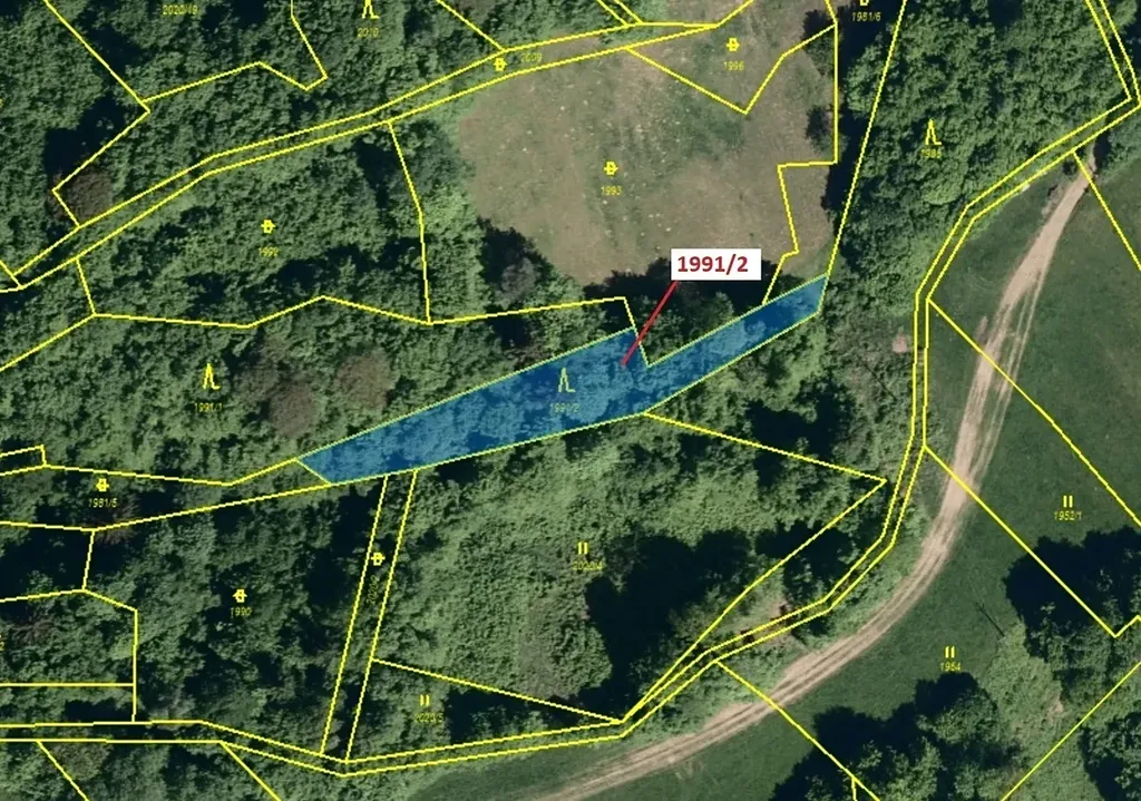 Lesní pozemek o výměře 933 m2, parcelní číslo 1991/2, podíl 1/1, katastrální území Hovězí, obec Hovězí, obec s rozšířenou působností Vsetín, okres Vsetín, Zlínský kraj.