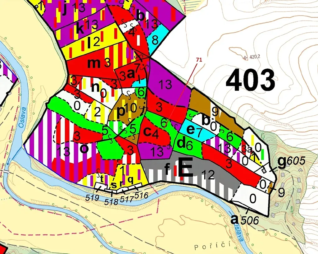 Lesní pozemek o výměře 6602 m2, parcelní číslo 71, podíl 1/1, katastrální území Vaneč, obec Pyšel, obec s rozšířenou působností Třebíč, okres Třebíč, Kraj Vysočina. Částečně po těžbě.