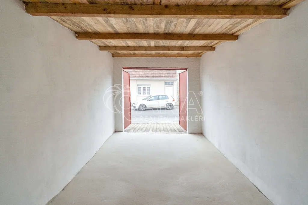 Vrata garáže jsou plechová opatřená přídavným zámkem, garáž je po aktuální celkové rekonstrukci včetně střechy.