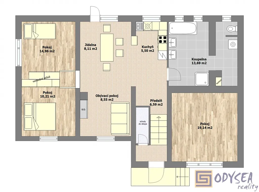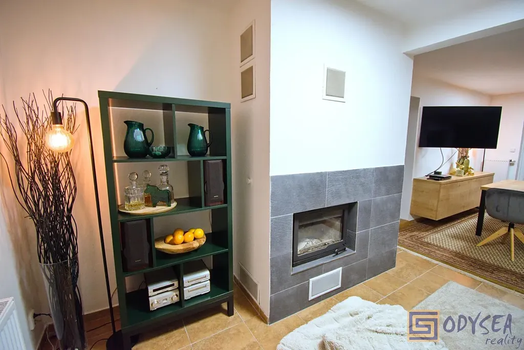Interiér domu má zajímavé dispoziční řešení, srdcem domu je obývací pokoj s moderním kuchyňským koutem, ze kterého se vchází do ostatních pokojů a koupelny. Dům je obklopen okrasnou zahradou, která poskytuje dostatek soukromí. V letních měsících je možné nerušeně relaxovat ve stylovém zahradním altánu, k dispozici je nadzemní bazén a útulná zahradní chatka. Naproti domu stojí hospodářská budova, jejíž součástí je garáž. Dům a zahrada všestranně zajišťují potřeby současného moderního bydlení. Za výhodu lze považovat i skutečnost, že zadní část pozemku může být do budoucna využita k další výstavbě. Nejbližší autobusová zastávka je cca 300 m, centrum obce cca 1,5 km. Pokud Vás tato nemovitost zaujala, rádi Vás přivítáme na nezávazné prohlídce.