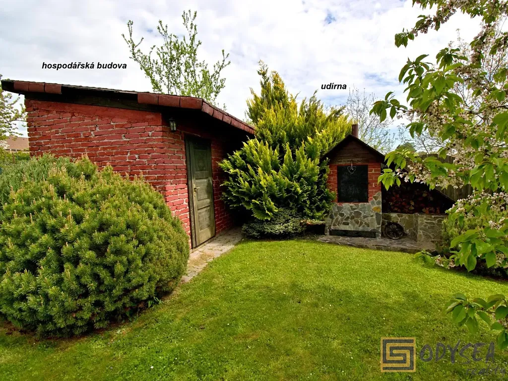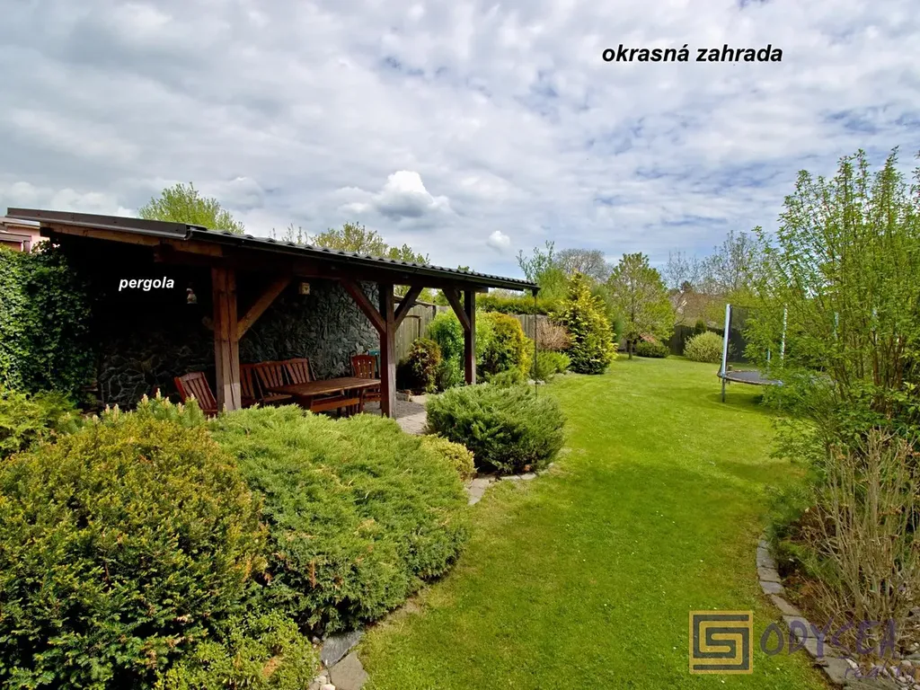 Celková plocha pozemku činí 987 m2 a tím, že se jedná o krajní řadový dům, je zahrada opravdu klidným místem k relaxaci, je zde prostor k vybudování bazénu, stylová pergola láká k příjemnému posezení, velká udírna jistě taky občas potěší nějakými dobrými pochutinami.