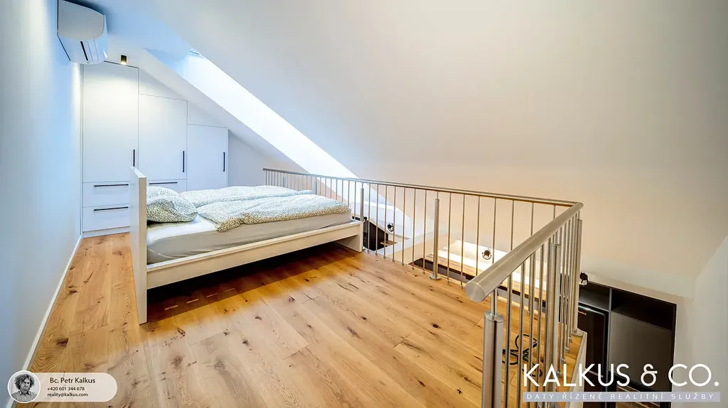 Byt právě prošel citlivou rekonstrukcí v nadstandardním provedení, které spojuje historický šarm s moderním komfortem.Velkorysé loftové stropy, otevřená galerie a světlá paleta materiálů dodávají interiéru vzdušnost, eleganci a klidnou nadčasovost. Každý detail byl promyšlen — od dřevěných podlah a úložného prostoru pod schodištěm, po vestavěné skříně a kuchyň. Podlahové vytápění zajišťuje příjemné teplo, v létě pak komfort doplní klimatizace a elektricky ovládané stínění.