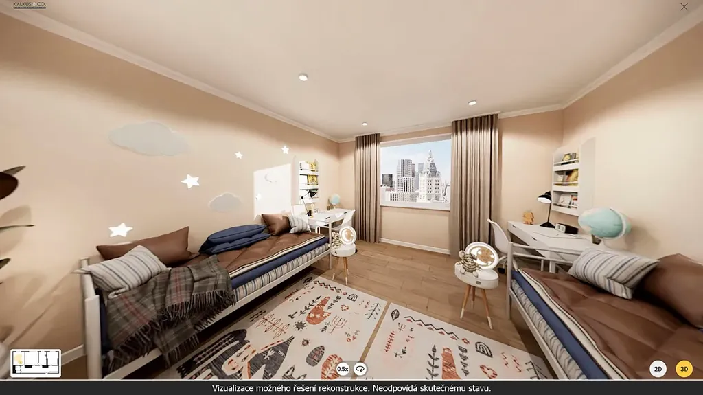 dětský pokoj 14,5 m² – samostatný, neprůchozí;