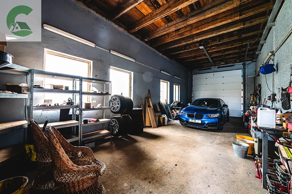 Mimo hlavní objekt se na pozemku nachází také samostatná garáž o ploše 65 m², vhodná pro dvě velká auta. Její velikost umožňuje využití jako dílny, prostoru pro podnikání nebo jako rozšíření obytného zázemí.