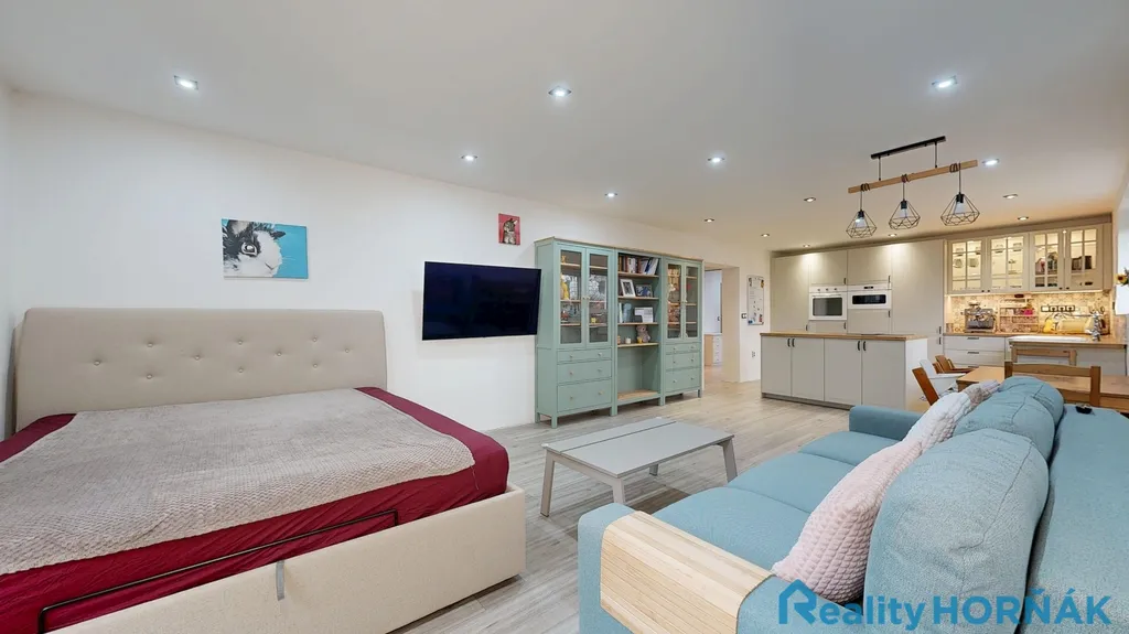 V přízemí je dokončena dispozice 2+KK se sociálním zázemím. Dispozice zahrnuje obývací pokoj s kuchyňským koutem, ložnici, koupelnu, samostatné WC, předsíň, chodbu, šatnu a spíž. Tato část domu je již zcela plnohodnotně obyvatelná. Kuchyňská část je vybavena nadstandardní kuchyňskou linkou s kvalitními materiály, vestavěnými spotřebiči. Kuchyně byla realizována jako finální řešení, nikoliv jako provizorium.
