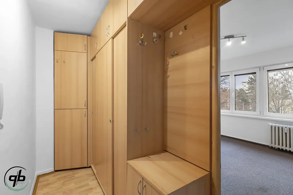 Dispozice bytu je prakticky řešena – vstupní chodba s vestavěnými skříněmi poskytuje dostatek úložného prostoru, kuchyně nabízí místo pro jídelní kout, obývací pokoj je světlý a vzdušný. Koupelna je vybavena vanou a toaletou.