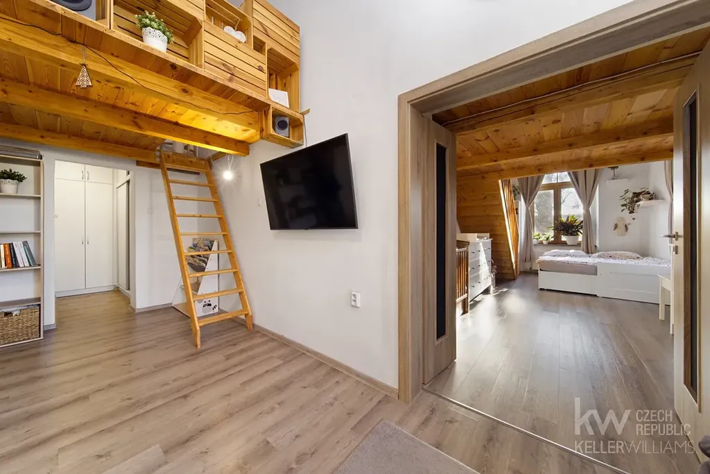 Součástí prodeje je i rozměrný sklep o velikosti 20 m2. Polovina je přestavěna na sklad nebo lze využít jako relaxační prostor.