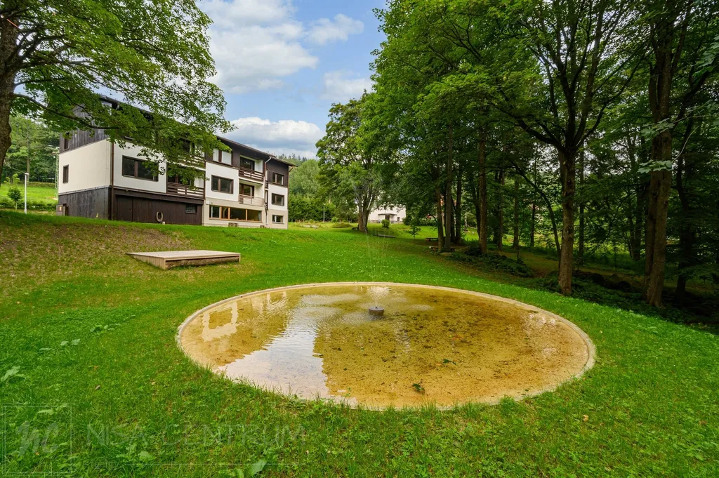 Toužíte po penzionu s výhledem do vlastního lesoparku s jezírkem? Právě pro vás máme příležitost ke koupi částečně zrekonstruovaného rekreačního areálu se dvěma domy a pozemky o rozloze 12 508 m².