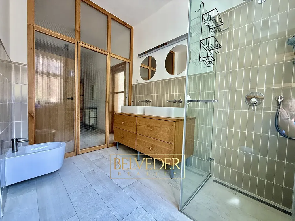 Součástí bytu jsou navíc dvě další místnosti (44 m²) umístěné o patro níže, které doplňují vlastním sociálním zázemím (sprchový kout a toaleta). Tyto prostory nejsou vedeny jako samostatná bytová jednotka, ale tvoří praktické rozšíření bytu a nabízejí široké možnosti využití – například jako pracovna, ateliér, pokoj pro hosty nebo zázemí pro podnikání.