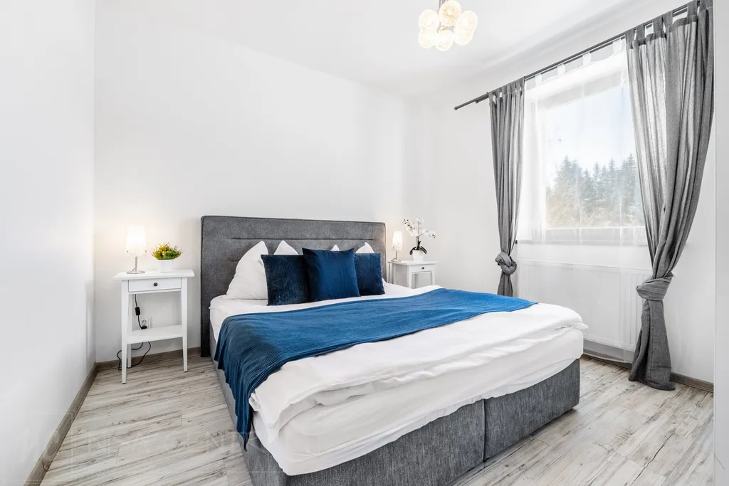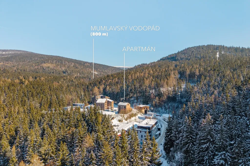 Jednotka o velikosti 48 m2 se nachází v 1. patře apartmánového domu. Dům je situován v krásné a vyhledávané lokalitě Harrachova.