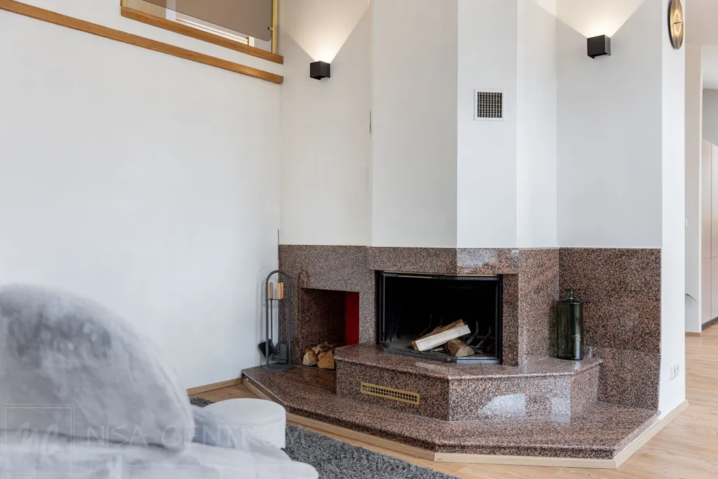 Jednotka je v perfektním stavu, připravena k okamžitému nastěhování, je zde nádherný vzdušný obývací pokoj s kuchyňským koutem, jehož dominantou jsou krbová kamna. Byt má tři ložnice, pracovnu, čtyři koupelny, když v jedné je sauna a velká vana pro dvě osoby s masážní funkcí. V dalším patře jsou pak dva samostatné pokoje, které mohou složit jako velkoryse řešené šatny. Obývací pokoj má výhled na jižní stranu a je tak zajištěn dostatek denního světla po celý den.