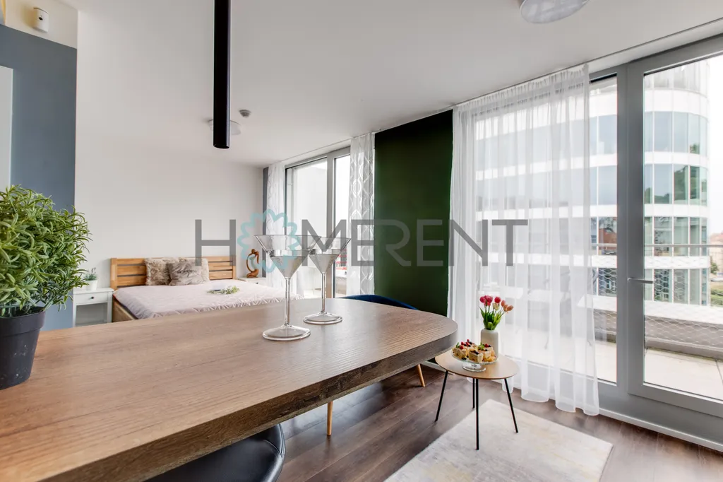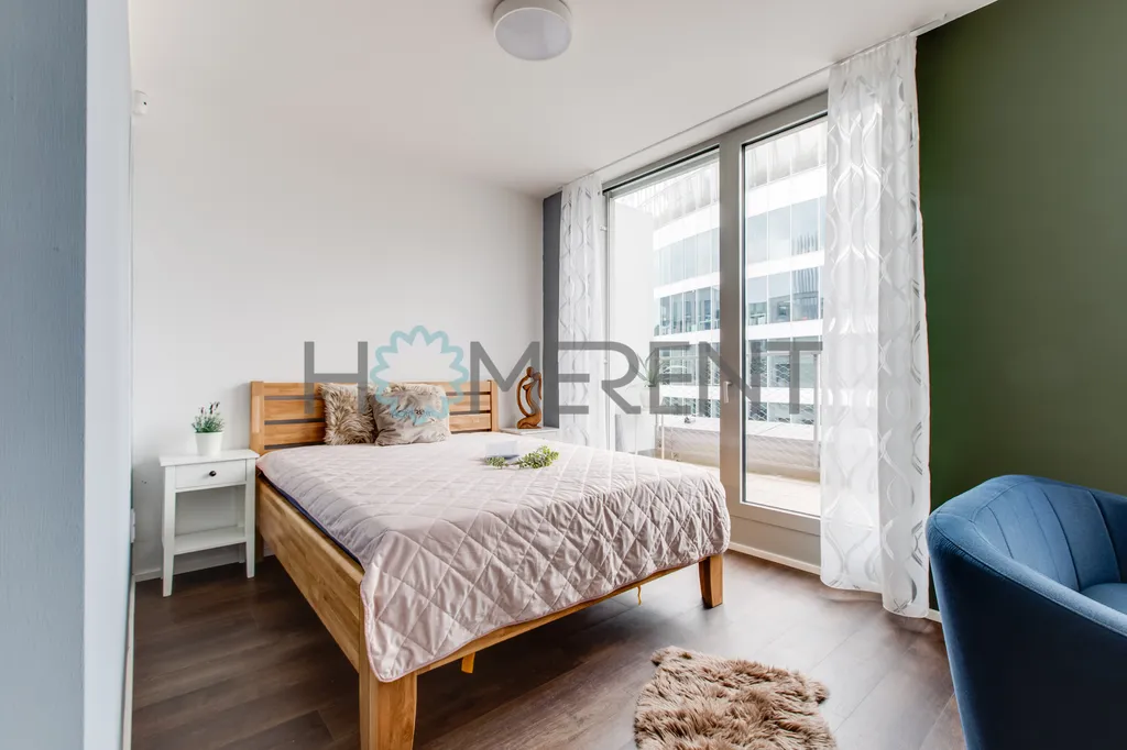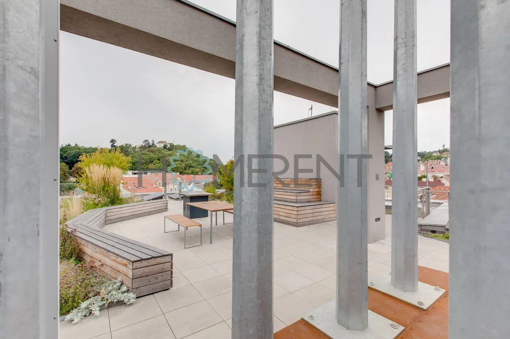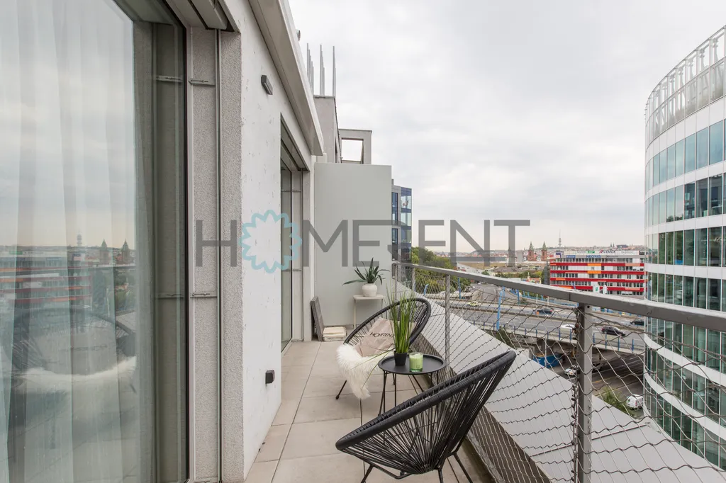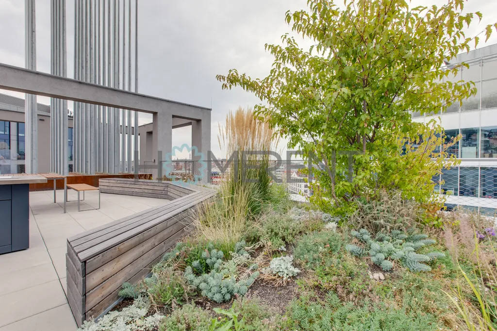 K pronájmu nabízíme světlý a moderně zařízený byt o dispozici 1+kk a výměře 31 m², který se nachází v 8. patře luxusní rezidence na pražském Smíchově. Součástí bytu je prostorný balkon o velikosti 10 m² a také společná střešní terasa s posezením a grilem, dostupná všem obyvatelům domu.