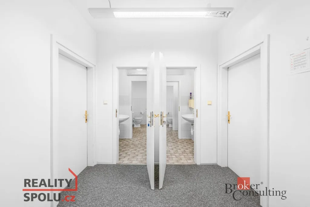 Nabízíme k pronájmu administrativní objekt s vlastním pozemkem v obci Průhonice. Jedná se o třípatrovou budovu o celkové výměře 447 m², včetně parkovacích míst za branou pro minimálně 12 aut. Aktuálně je budova rozčleněna na 9 oddělených místností, což poskytuje široké možnosti přizpůsobení dispozic pro rodinné bydlení. Přízemí nabízí vstupní halu, kancelář, zasedací místnost a garáž, která by mohla sloužit jako sklad nebo parkovací prostor. První patro obsahuje pět místností vhodných pro ložnice nebo pracovny, druhé patro pak disponuje dvěma místnostmi a velkým prostorem, ideálním pro společenské aktivity. Nový plynový kotel Viessmann zajišťuje efektivní vytápění a ohřev TUV. Na pozemek je vjezd automatickými vraty a vše je zabezpečeno EZS. Okolní zeleň zajišťuje příjemné prostředí pro relaxaci. Díky výborné dostupnosti Prahy a dálnice D1 je tento objekt ideální pro rodinné bydlení.