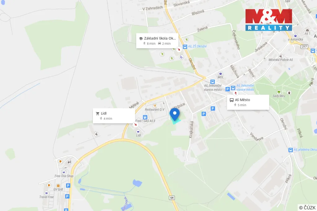 Lokalita je klidná a vhodná pro trvalé bydlení, zároveň však nabízí dobrou dostupnost veškeré občanské vybavenosti, kterou město Aš poskytuje – školy, školky, obchody, služby i lékařskou péči. Okolí nabízí dostatek zeleně a možností pro volnočasové aktivity, což ocení zejména rodiny s dětmi nebo zájemci o klidné bydlení mimo ruch velkých měst.