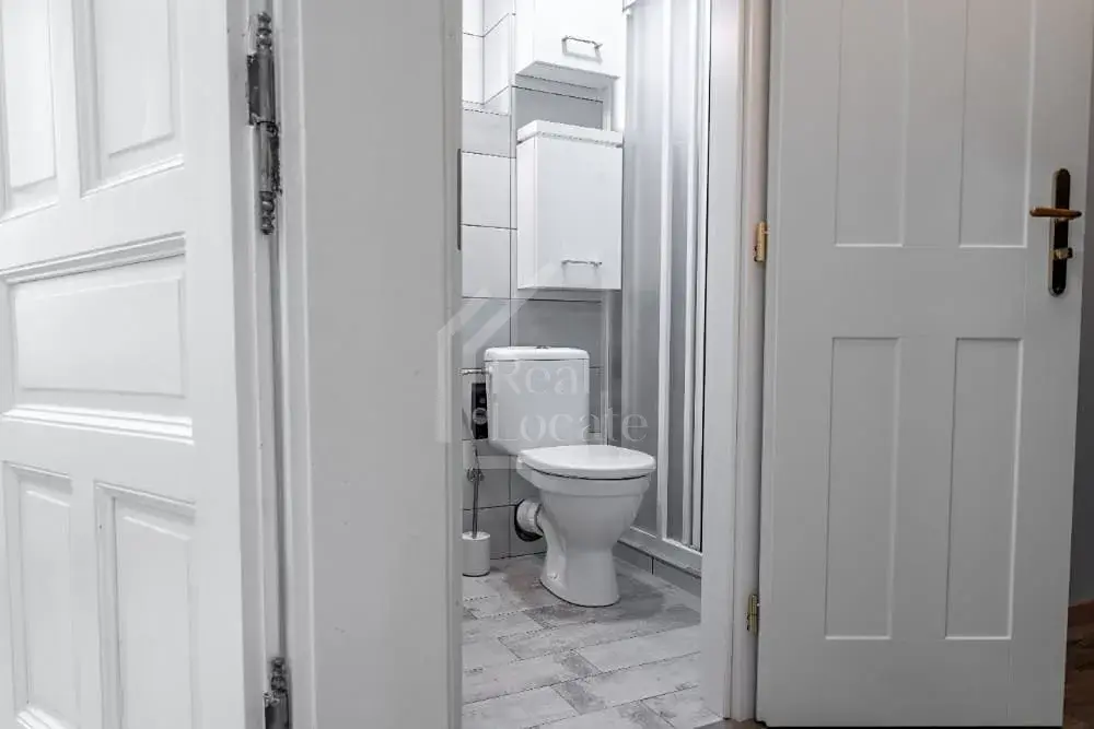 Dispozice a vybavení: prostorný obývací pokoj a samostatná kuchyně s kuchyňskou linkou včetně: myčky nádobí, trouby, varného panelu, (lednice není součástí vybavení). Dále koupelna s vanou a vlastním elektrickým bojlerem (umístěn v koupelně), samostatné WC.