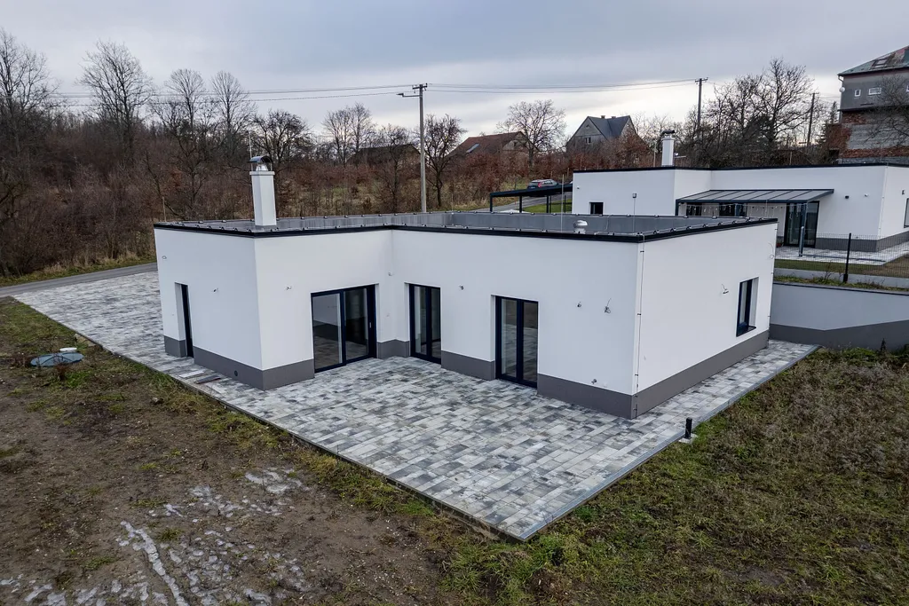 Představte si místo, kde se moderní architektura potkává s klidem přírody. Kde máte dostatek soukromí, prostor pro rodinu i zázemí, které odpovídá nárokům dnešního života.