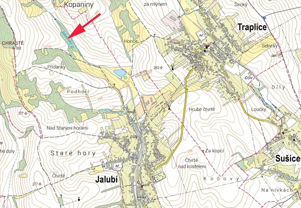 Prodáme 75% podíl na pozemku, louka u potoka v k.ú. Jalubí, parc.č. 828/3 a 828/4.