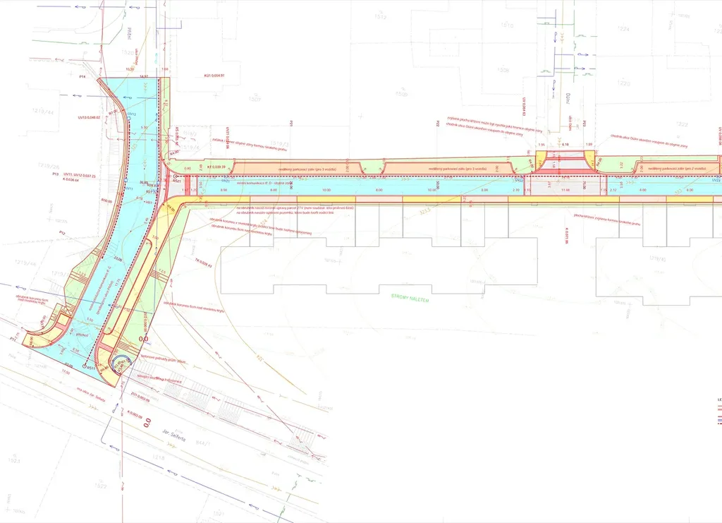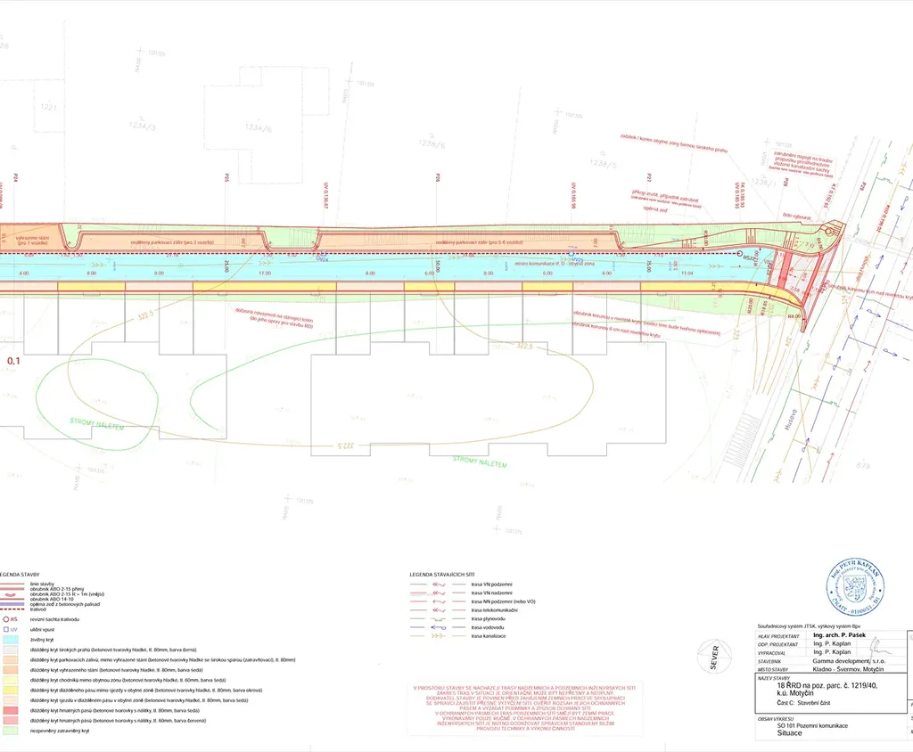 - veškeré ostatní sítě (voda, plyn, elektro) jsou přímo v sousedící komunikaci, naproti pozemku je trafostanice s dostatečným příkonem, v blízkosti i vedení 22kV