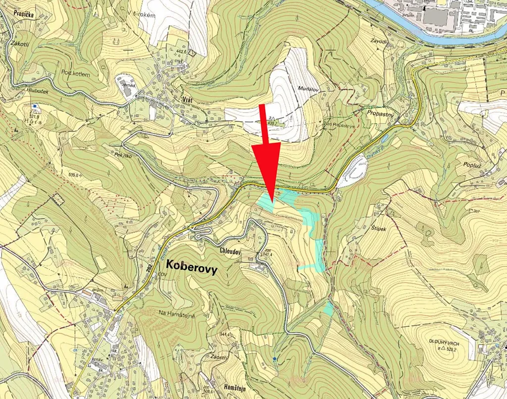 Prodáme pozemek, louku s porostem stromů (možno vykácet) v k.ú. Koberovy, parc.č. 4431.