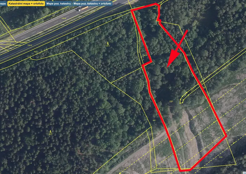 Prodáme les v k.ú. Dolní Rychnov, parcela č. 918/3, 918/2 a 917/6, přímo u dálnice - ideální místo pro mobilní reklamu.
