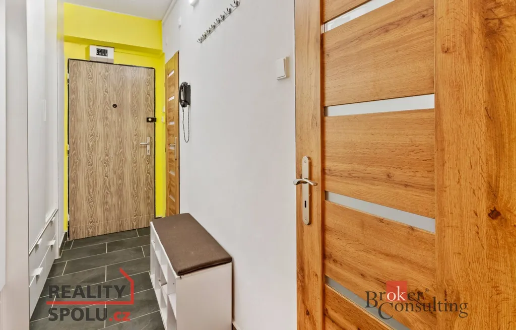 Byt se skládá ze vstupní chodby, ze které je přístup do jednotlivých místností. K dispozici je kuchyň, prostorný obývací pokoj, samostatná ložnice, koupelna a oddělené WC. Interiér je laděn do příjemného, ale moderního, vkusného stylu s důrazem na dřevěné prvky, které bytu dodávají útulnou atmosféru. Prostor působí čistě a udržovaně. Součástí je také sklepní kóje o velikosti 5m2.