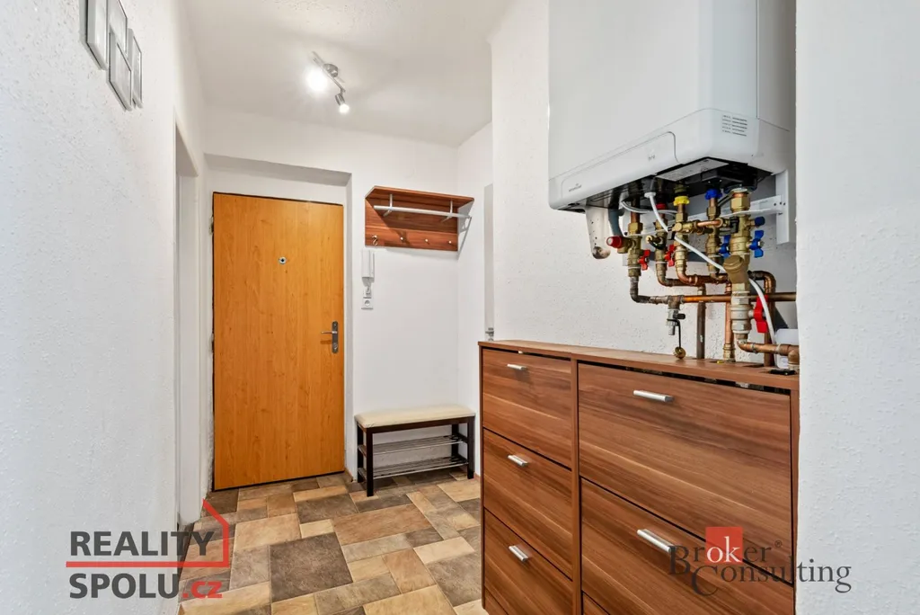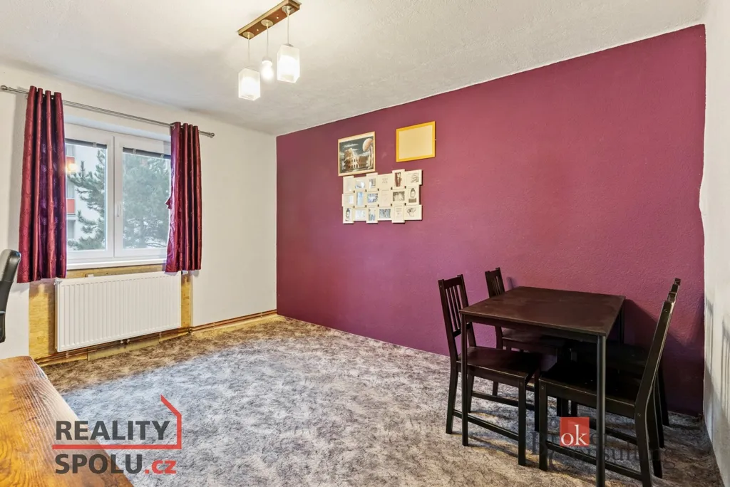 Byt má prakticky řešený vstupní prostor, který plynule propojuje obytnou část. Kuchyň je vkusně řešena v kombinaci bílé kuchyňské linky a jemných zelených tónů, které prostoru dodávají svěží a příjemnou atmosféru. Na kuchyň navazuje prostorný obývací pokoj s dostatkem místa pro jídelní stůl, ideální pro rodinné stolování i posezení s přáteli. Dále se v bytě nachází ložnice a koupelna spojená s WC. Byt působí světlým, čistým a útulným dojmem. K bytu náleží také sklep o velikosti 5 m², který poskytuje dostatek úložného prostoru.