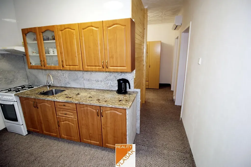 Byt 2+1+lodžie je situován ve 7. patře (posledním) panelové budovy, která se nachází v ulici Chomutovská, Kadaň. Osobní vlastnictví, podlahová plocha bytu činí 56,50 m2 s dispozicí: 2x pokoj, kuchyň, koupelna, WC, předsíň, lodžie 3 m2, sklep 2 m2 (lodžie a sklep započítány do plochy). Byt byl nově rekonstruovaný - nové dveře s obložkovými zárubněmi, rekonstruovaná koupelna a WC, instalována klimatizace, nová kamenná pracovní deska na kuchyňské lince z brazilské žuly, nová dlažba na lodžii. Budova je zateplena a jsou osazena plastová okna. Možno připojit kabelovou TV+internet (není zahrnuto v ceně). Celková měsíční platba se skládá z nájemného plus zálohy na teplo, T + S vodu, spol.el.,(teplo 1.400,- Kč/byt/měs. T+S voda 900,-Kč/osoba/měs., elektřina a plyn přepis na nájemníka, spol.el.+výtah 90,-Kč/os./měs.), vratná jistota 20.000,- Kč. Podrobná tabulka plateb viz fotografie k nabídce.