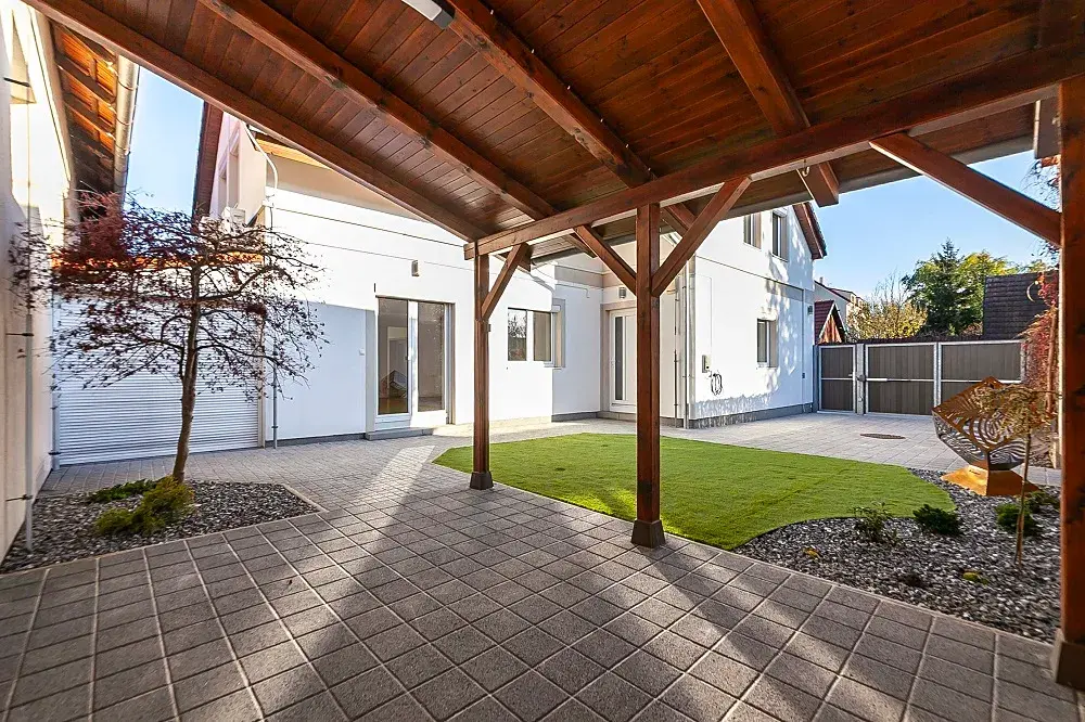Dům je vybaven klimatizací, fotovoltaikou a nabíjecí stanicí pro automobil, předokenními roletami s el. pohonem, krbem, datovými rozvody, pokrytím WI-FI v celém domě, zabezpečovacím systémem s možností napojení na PCO, podlahovým vytápěním, venkovním skladem/dílnou, infrasaunou. Topení a teplou vodu zajišťuje plynový kondenzační kotel. Parkování je možné na dvoře nemovitosti, případně před domem. Majitel domu volil při výstavbě domu nadstandardní zařizovací prvky od kvalitních výrobců.
